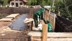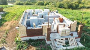 При строительстве этого дома использовался газобетонный блок марки D 500. Облицовочный клинкерный одинарный кирпич (подтип – баварская кладка). Кровельное покрытие – металлочерепица «Монтеррей». Железобетонные многопустотные плиты перекрытия. Срок строительства – 3 месяца