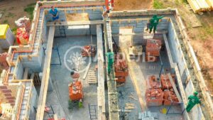 При строительстве этого дома использовался газобетонный блок марки D 500. Облицовочный одинарный кирпич. Кровельное покрытие – металлочерепица с матовым покрытием. Железобетонные многопустотные плиты перекрытия. Срок строительства – 5 месяцев