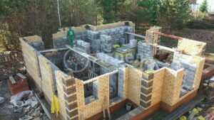 При строительстве этого дома использовался газобетонный блок марки D 500. Облицовочный кирпич полуторный «КУЗСМ» марки М 150. Кровельное покрытие гибкая черепица технониколь «shinglas». В этом доме на две сетки плит. Срок строительства 4 месяца