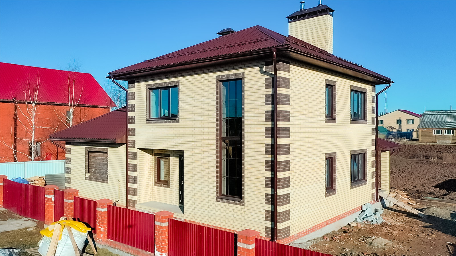 | Фасад | полуторный лицевой кирпич, металлопластиковые окна с ламинацией |