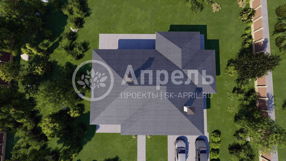 Стропильный каркас (доска сечением 200х50 мм), обрешетка (доска сечением 150х25 мм). Контробрешетка из бруска (50х50 мм). Пропитка пиломатериала огнебиозащитой. Ветро-влагозащитная мембрана Изоспан. Кровля — металлочерепица Grand Line (толщина 0,5 мм). Обшивка свесов кровли виниловыми софитами, монтаж ветровой планки.