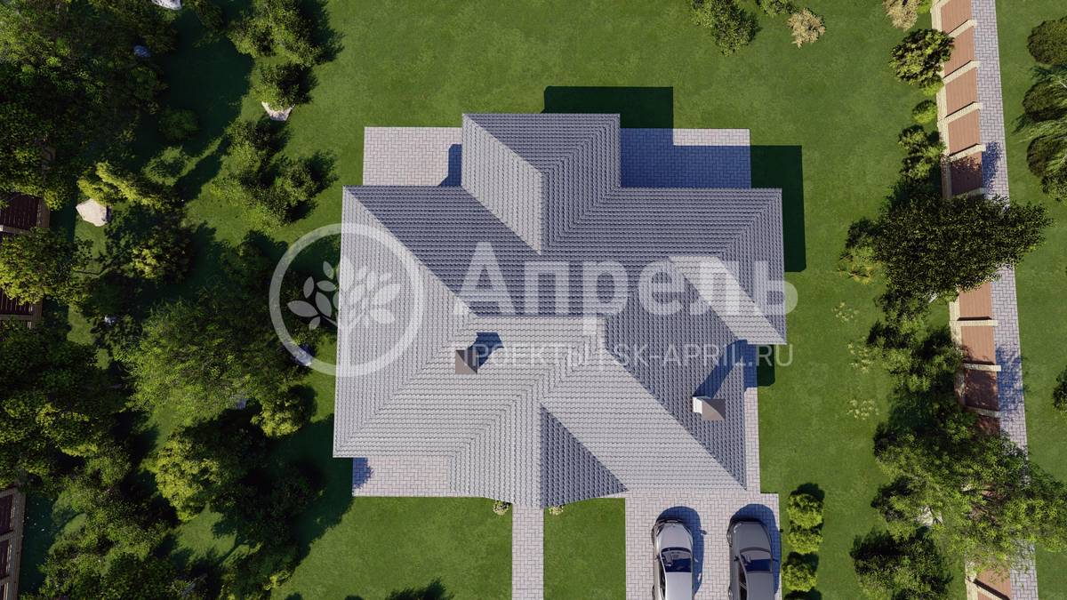 Стропильный каркас (доска сечением 200х50 мм), обрешетка (доска сечением 150х25 мм). Контробрешетка из бруска (50х50 мм). Пропитка пиломатериала огнебиозащитой. Ветро-влагозащитная мембрана Изоспан. Кровля — металлочерепица Grand Line (толщина 0,5 мм). Обшивка свесов кровли виниловыми софитами, монтаж ветровой планки.