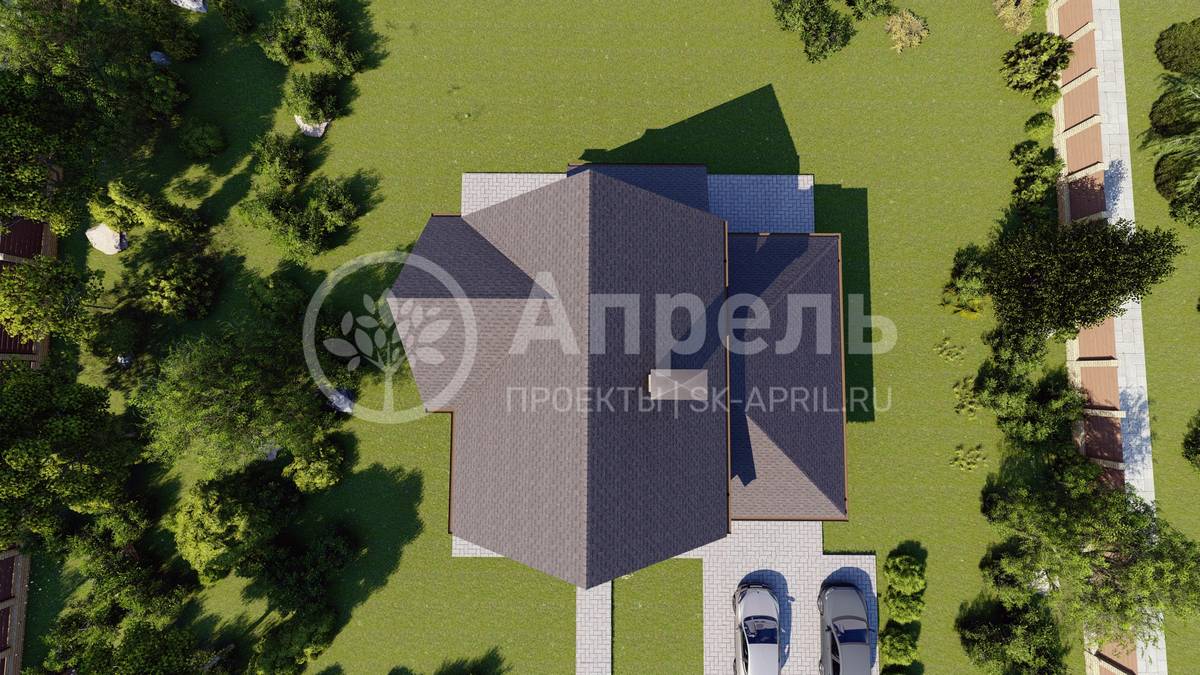 Стропильный каркас (доска сечением 200х50 мм), обрешетка (доска сечением 150х25 мм). Контробрешетка из бруска (50х50 мм). Пропитка пиломатериала огнебиозащитой. Ветро-влагозащитная мембрана Изоспан. Кровля — металлочерепица Grand Line (толщина 0,5 мм). Обшивка свесов кровли виниловыми софитами, монтаж ветровой планки.
