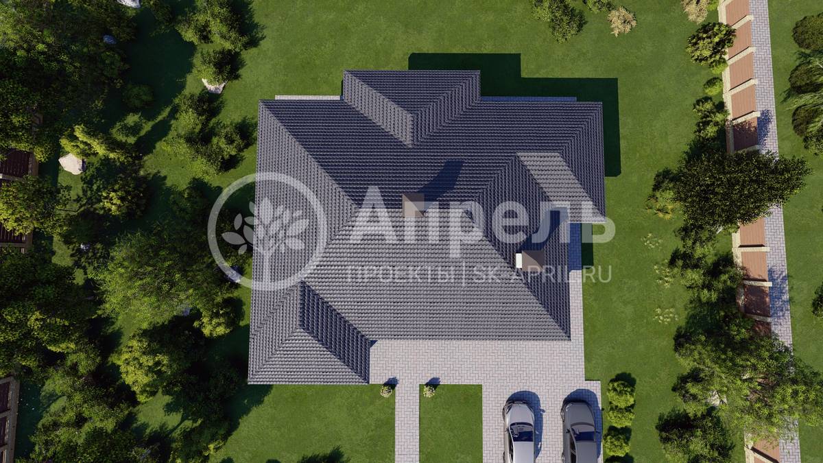 Стропильный каркас (доска сечением 200х50 мм), обрешетка (доска сечением 150х25 мм). Контробрешетка из бруска (50х50 мм). Пропитка пиломатериала огнебиозащитой. Ветро-влагозащитная мембрана Изоспан. Кровля — металлочерепица Grand Line (толщина 0,5 мм). Обшивка свесов кровли виниловыми софитами, монтаж ветровой планки.