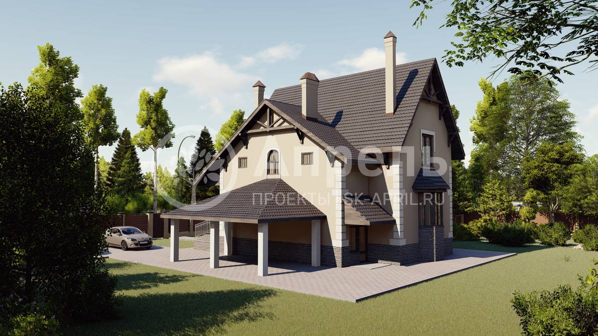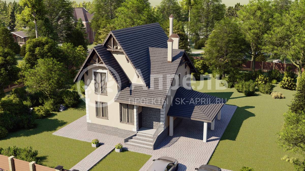 Стропильный каркас (доска сечением 200х50 мм), обрешетка (доска сечением 150х25 мм). Контробрешетка из бруска (50х50 мм). Пропитка пиломатериала огнебиозащитой. Ветро-влагозащитная мембрана Изоспан. Кровля — металлочерепица Grand Line (толщина 0,5 мм). Обшивка свесов кровли виниловыми софитами, монтаж ветровой планки.