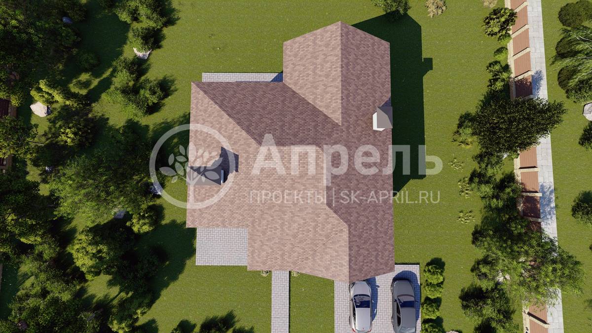 Стропильный каркас (доска сечением 200х50 мм), обрешетка (доска сечением 150х25 мм). Контробрешетка из бруска (50х50 мм). Пропитка пиломатериала огнебиозащитой. Ветро-влагозащитная мембрана Изоспан. Кровля — металлочерепица Grand Line (толщина 0,5 мм). Обшивка свесов кровли виниловыми софитами, монтаж ветровой планки.