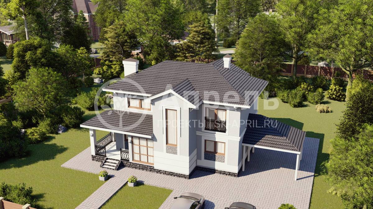 Стропильный каркас (доска сечением 200х50 мм), обрешетка (доска сечением 150х25 мм). Контробрешетка из бруска (50х50 мм). Пропитка пиломатериала огнебиозащитой. Ветро-влагозащитная мембрана Изоспан. Кровля — металлочерепица Grand Line (толщина 0,5 мм). Обшивка свесов кровли виниловыми софитами, монтаж ветровой планки.
