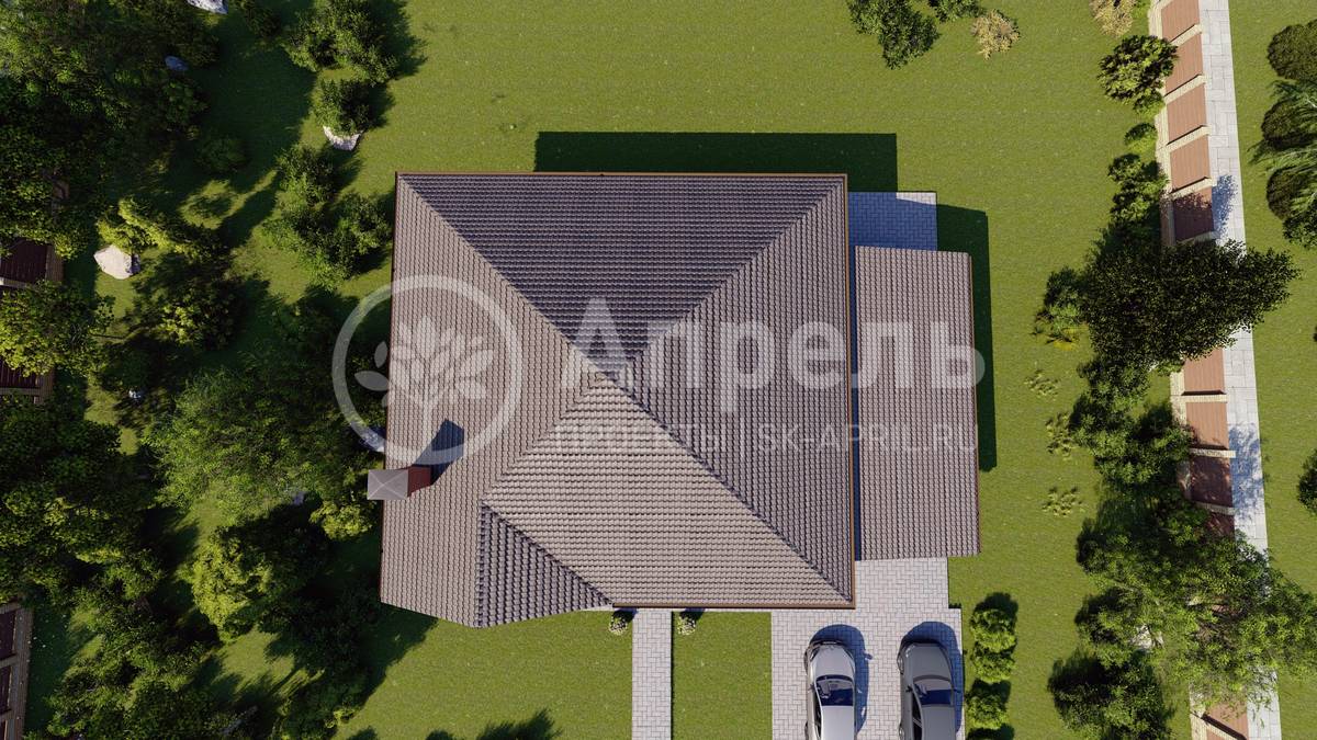 Стропильный каркас (доска сечением 200х50 мм), обрешетка (доска сечением 150х25 мм). Контробрешетка из бруска (50х50 мм). Пропитка пиломатериала огнебиозащитой. Ветро-влагозащитная мембрана Изоспан. Кровля — металлочерепица Grand Line (толщина 0,5 мм). Обшивка свесов кровли виниловыми софитами, монтаж ветровой планки.