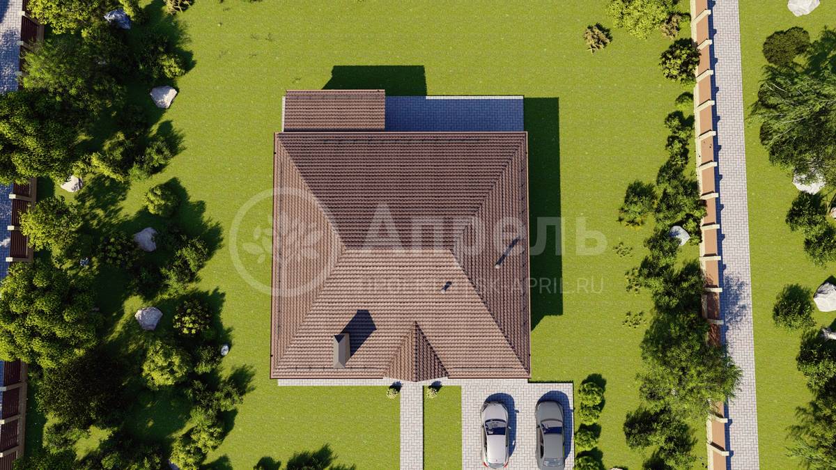 Стропильный каркас (доска сечением 200х50 мм), обрешетка (доска сечением 150х25 мм). Контробрешетка из бруска (50х50 мм). Пропитка пиломатериала огнебиозащитой. Ветро-влагозащитная мембрана Изоспан. Кровля — металлочерепица Grand Line (толщина 0,5 мм). Обшивка свесов кровли виниловыми софитами, монтаж ветровой планки.