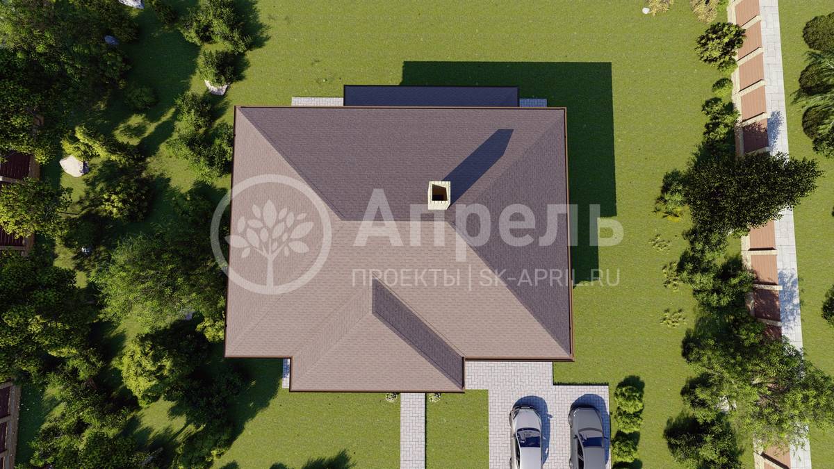 Стропильный каркас (доска сечением 200х50 мм), обрешетка (доска сечением 150х25 мм). Контробрешетка из бруска (50х50 мм). Пропитка пиломатериала огнебиозащитой. Ветро-влагозащитная мембрана Изоспан. Кровля — металлочерепица Grand Line (толщина 0,5 мм). Обшивка свесов кровли виниловыми софитами, монтаж ветровой планки.