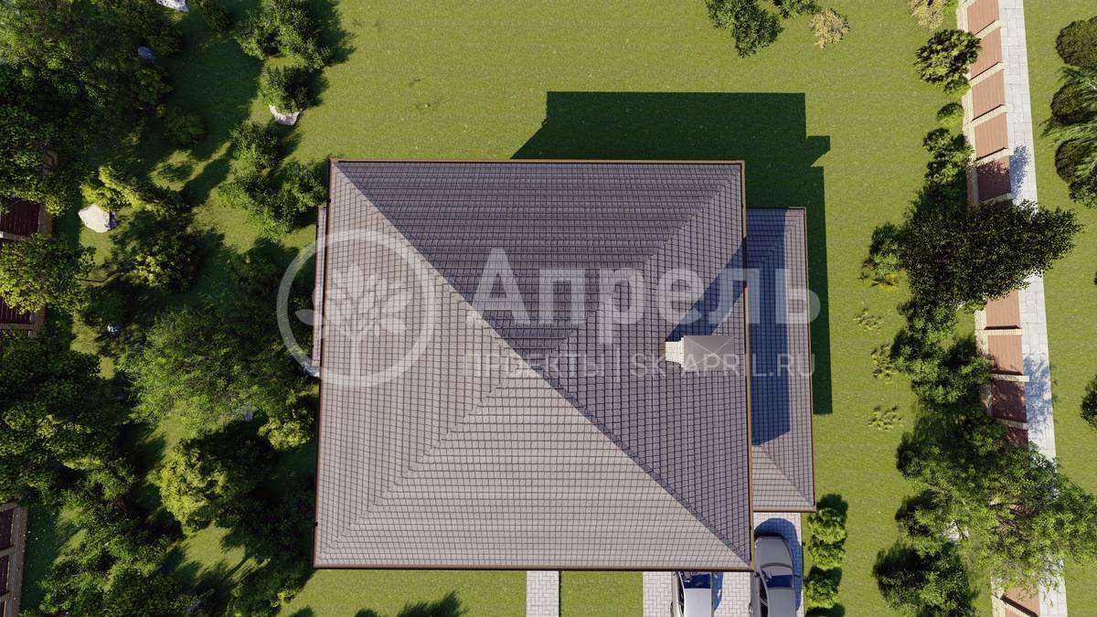 Стропильный каркас (доска сечением 200х50 мм), обрешетка (доска сечением 150х25 мм). Контробрешетка из бруска (50х50 мм). Пропитка пиломатериала огнебиозащитой. Ветро-влагозащитная мембрана Изоспан. Кровля — металлочерепица Grand Line (толщина 0,5 мм). Обшивка свесов кровли виниловыми софитами, монтаж ветровой планки.