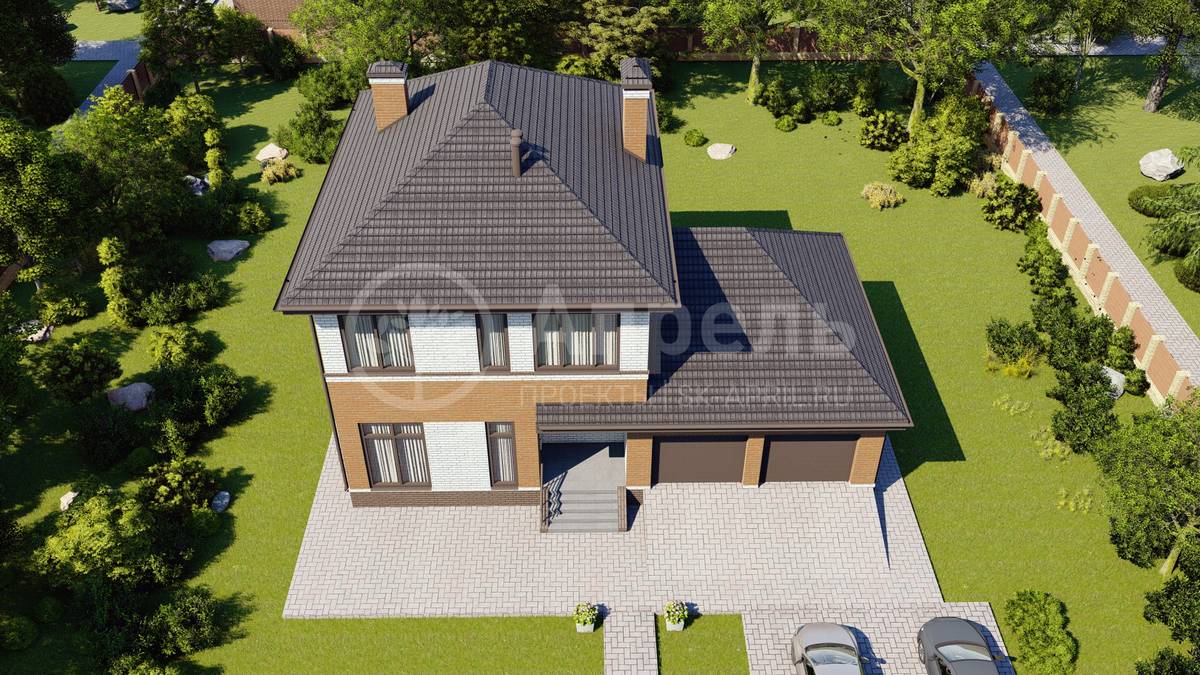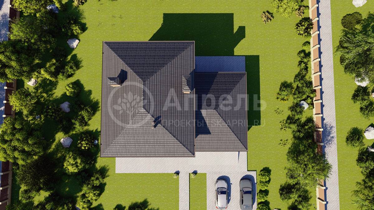 Стропильный каркас (доска сечением 200х50 мм), обрешетка (доска сечением 150х25 мм). Контробрешетка из бруска (50х50 мм). Пропитка пиломатериала огнебиозащитой. Ветро-влагозащитная мембрана Изоспан. Кровля — металлочерепица Grand Line (толщина 0,5 мм). Обшивка свесов кровли виниловыми софитами, монтаж ветровой планки.