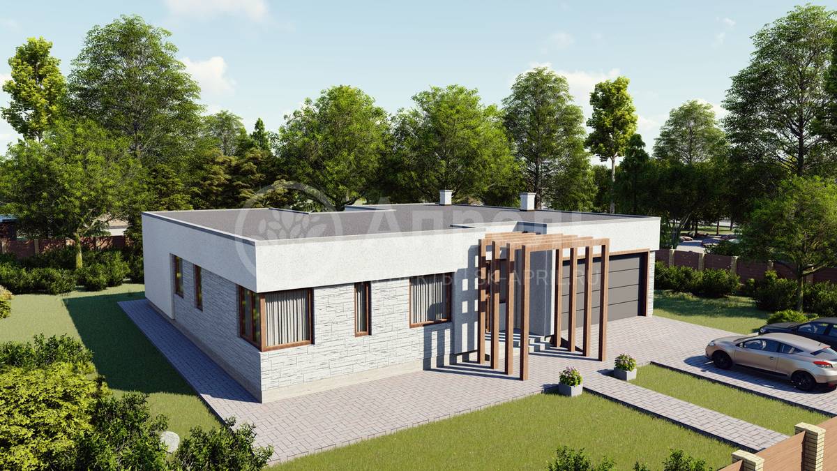 Стропильный каркас (доска сечением 200х50 мм), обрешетка (доска сечением 150х25 мм). Контробрешетка из бруска (50х50 мм). Пропитка пиломатериала огнебиозащитой. Ветро-влагозащитная мембрана Изоспан. Кровля — металлочерепица Grand Line (толщина 0,5 мм). Обшивка свесов кровли виниловыми софитами, монтаж ветровой планки.