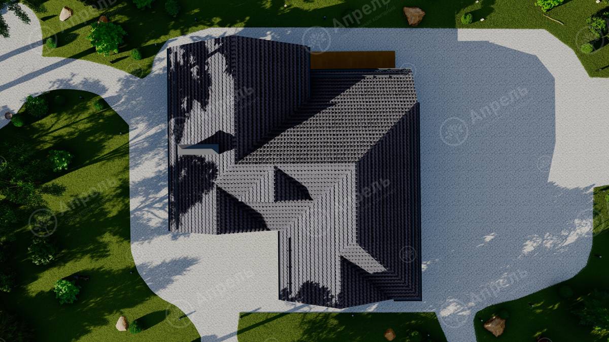 Стропильный каркас (доска сечением 200х50 мм), обрешетка (доска сечением 150х25 мм). Контробрешетка из бруска (50х50 мм). Пропитка пиломатериала огнебиозащитой. Ветро-влагозащитная мембрана Изоспан. Кровля — металлочерепица Grand Line (толщина 0,5 мм). Обшивка свесов кровли виниловыми софитами, монтаж ветровой планки.