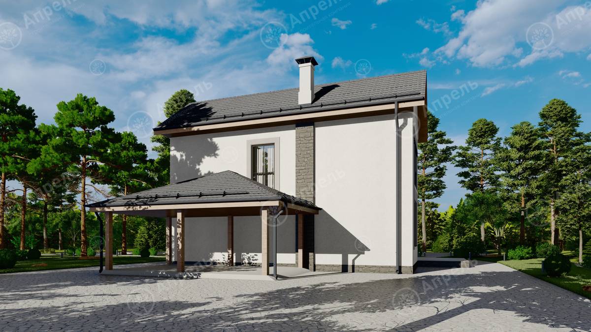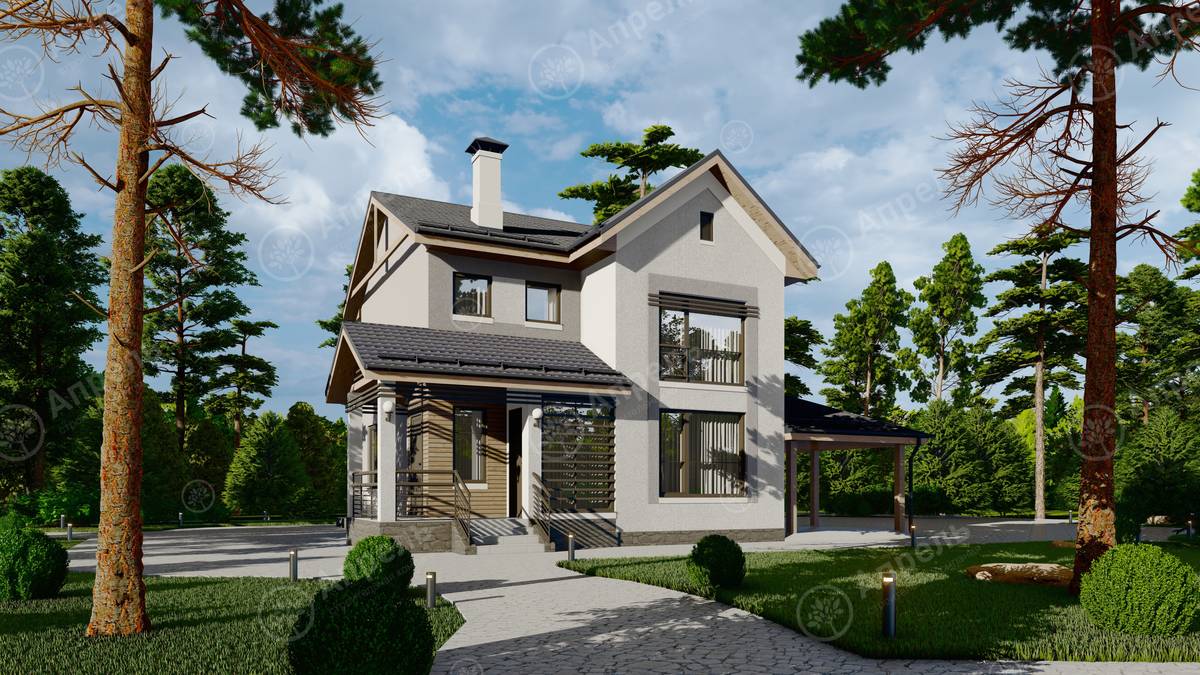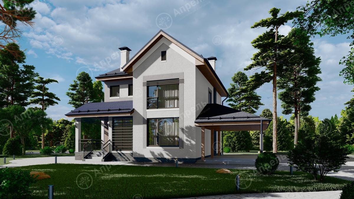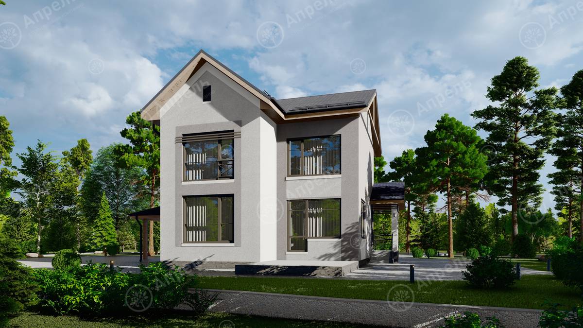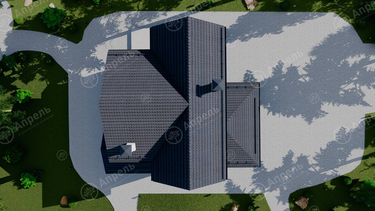 Стропильный каркас (доска сечением 200х50 мм), обрешетка (доска сечением 150х25 мм). Контробрешетка из бруска (50х50 мм). Пропитка пиломатериала огнебиозащитой. Ветро-влагозащитная мембрана Изоспан. Кровля — металлочерепица Grand Line (толщина 0,5 мм). Обшивка свесов кровли виниловыми софитами, монтаж ветровой планки.