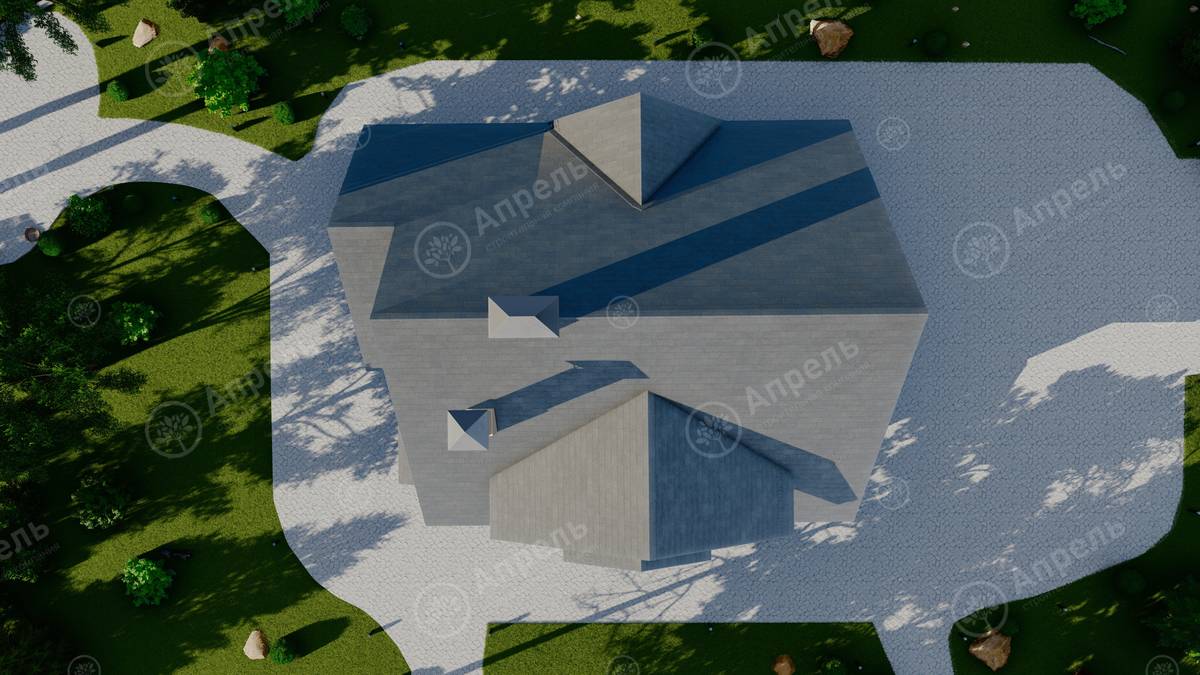 Стропильный каркас (доска сечением 200х50 мм), обрешетка (доска сечением 150х25 мм). Контробрешетка из бруска (50х50 мм). Пропитка пиломатериала огнебиозащитой. Ветро-влагозащитная мембрана Изоспан. Кровля — металлочерепица Grand Line (толщина 0,5 мм). Обшивка свесов кровли виниловыми софитами, монтаж ветровой планки.