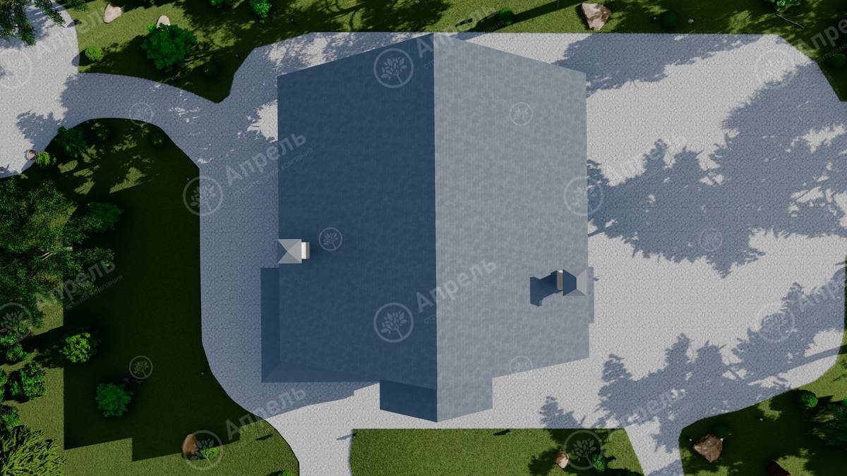Стропильный каркас (доска сечением 200х50 мм), обрешетка (доска сечением 150х25 мм). Контробрешетка из бруска (50х50 мм). Пропитка пиломатериала огнебиозащитой. Ветро-влагозащитная мембрана Изоспан. Кровля — металлочерепица Grand Line (толщина 0,5 мм). Обшивка свесов кровли виниловыми софитами, монтаж ветровой планки.