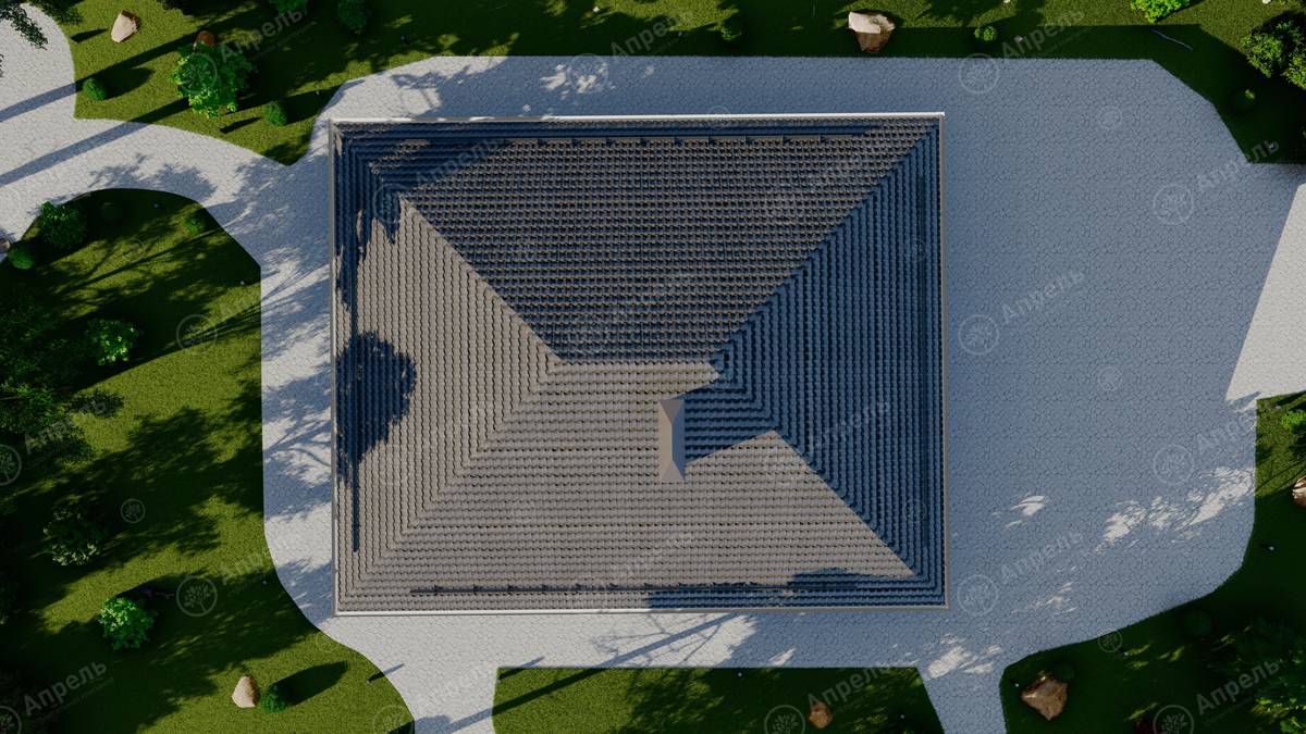 Стропильный каркас (доска сечением 200х50 мм), обрешетка (доска сечением 150х25 мм). Контробрешетка из бруска (50х50 мм). Пропитка пиломатериала огнебиозащитой. Ветро-влагозащитная мембрана Изоспан. Кровля — металлочерепица Grand Line (толщина 0,5 мм). Обшивка свесов кровли виниловыми софитами, монтаж ветровой планки.