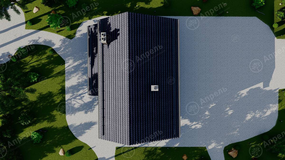 Стропильный каркас (доска сечением 200х50 мм), обрешетка (доска сечением 150х25 мм). Контробрешетка из бруска (50х50 мм). Пропитка пиломатериала огнебиозащитой. Ветро-влагозащитная мембрана Изоспан. Кровля — металлочерепица Grand Line (толщина 0,5 мм). Обшивка свесов кровли виниловыми софитами, монтаж ветровой планки.