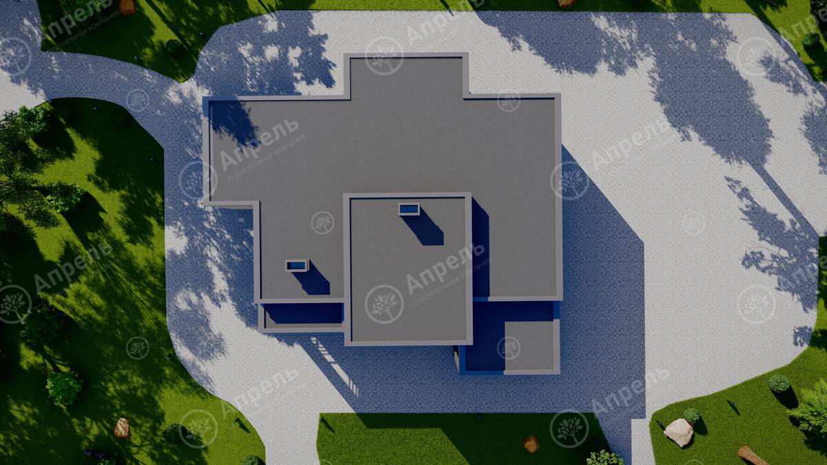 Стропильный каркас (доска сечением 200х50 мм), обрешетка (доска сечением 150х25 мм). Контробрешетка из бруска (50х50 мм). Пропитка пиломатериала огнебиозащитой. Ветро-влагозащитная мембрана Изоспан. Кровля — металлочерепица Grand Line (толщина 0,5 мм). Обшивка свесов кровли виниловыми софитами, монтаж ветровой планки.