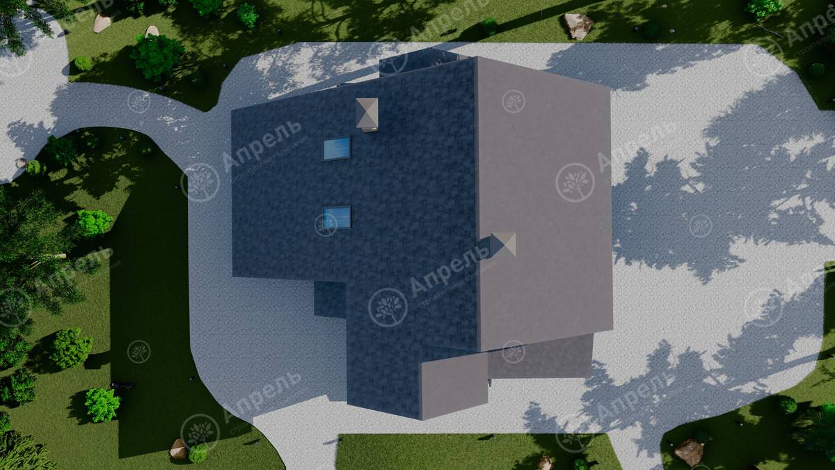 Стропильный каркас (доска сечением 200х50 мм), обрешетка (доска сечением 150х25 мм). Контробрешетка из бруска (50х50 мм). Пропитка пиломатериала огнебиозащитой. Ветро-влагозащитная мембрана Изоспан. Кровля — металлочерепица Grand Line (толщина 0,5 мм). Обшивка свесов кровли виниловыми софитами, монтаж ветровой планки.