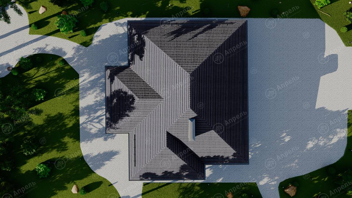 Стропильный каркас (доска сечением 200х50 мм), обрешетка (доска сечением 150х25 мм). Контробрешетка из бруска (50х50 мм). Пропитка пиломатериала огнебиозащитой. Ветро-влагозащитная мембрана Изоспан. Кровля — металлочерепица Grand Line (толщина 0,5 мм). Обшивка свесов кровли виниловыми софитами, монтаж ветровой планки.