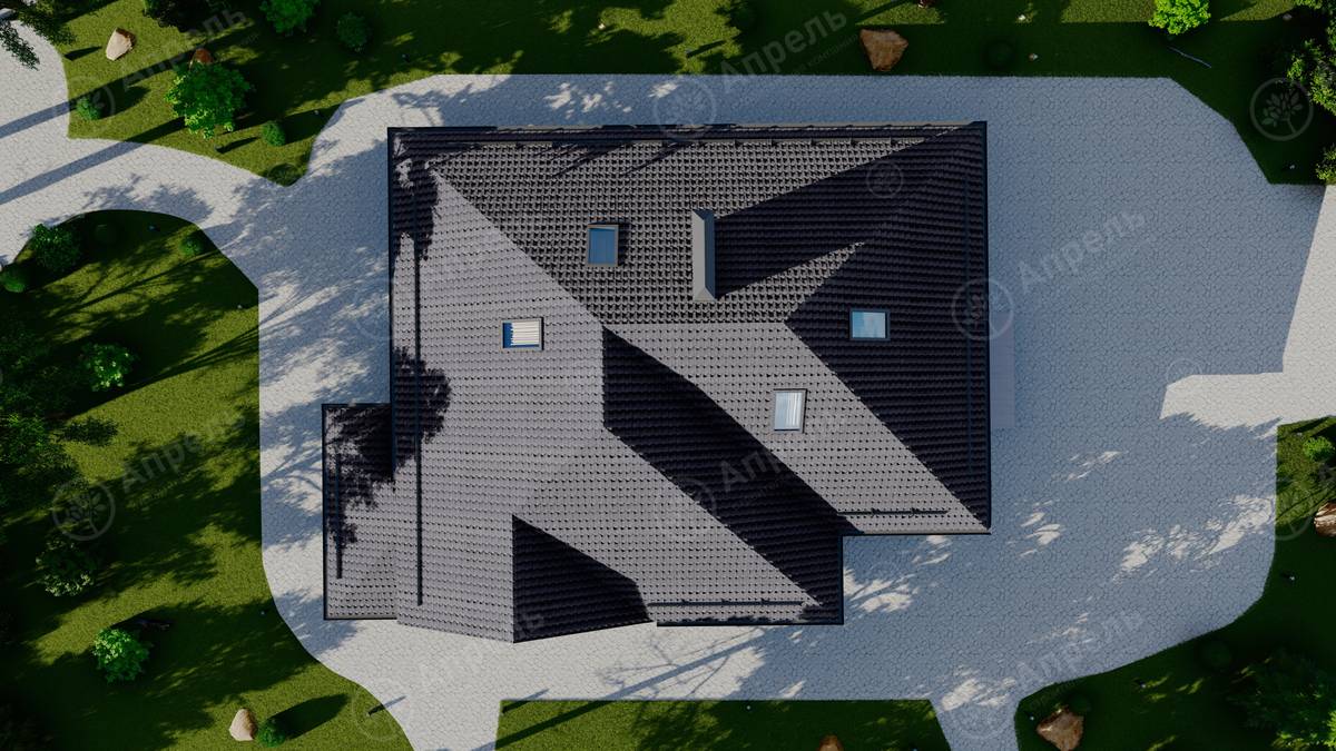 Стропильный каркас (доска сечением 200х50 мм), обрешетка (доска сечением 150х25 мм). Контробрешетка из бруска (50х50 мм). Пропитка пиломатериала огнебиозащитой. Ветро-влагозащитная мембрана Изоспан. Кровля — металлочерепица Grand Line (толщина 0,5 мм). Обшивка свесов кровли виниловыми софитами, монтаж ветровой планки.