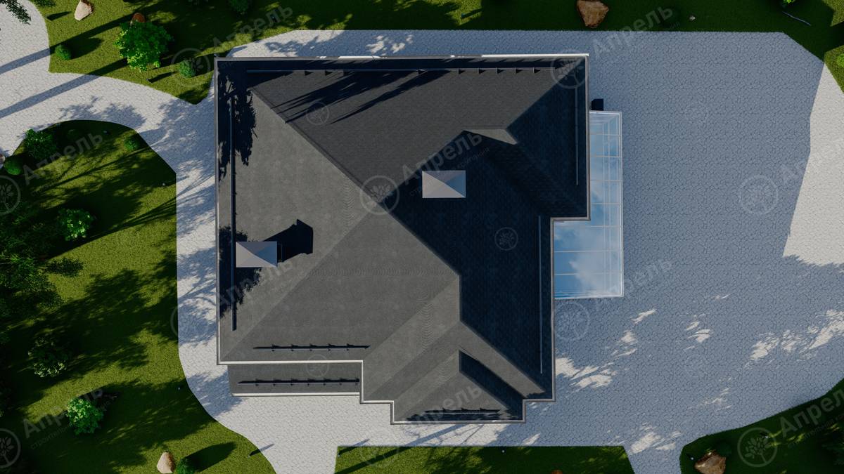 Стропильный каркас (доска сечением 200х50 мм), обрешетка (доска сечением 150х25 мм). Контробрешетка из бруска (50х50 мм). Пропитка пиломатериала огнебиозащитой. Ветро-влагозащитная мембрана Изоспан. Кровля — металлочерепица Grand Line (толщина 0,5 мм). Обшивка свесов кровли виниловыми софитами, монтаж ветровой планки.