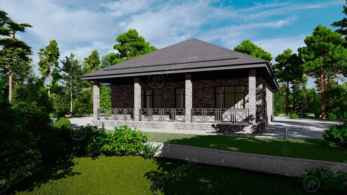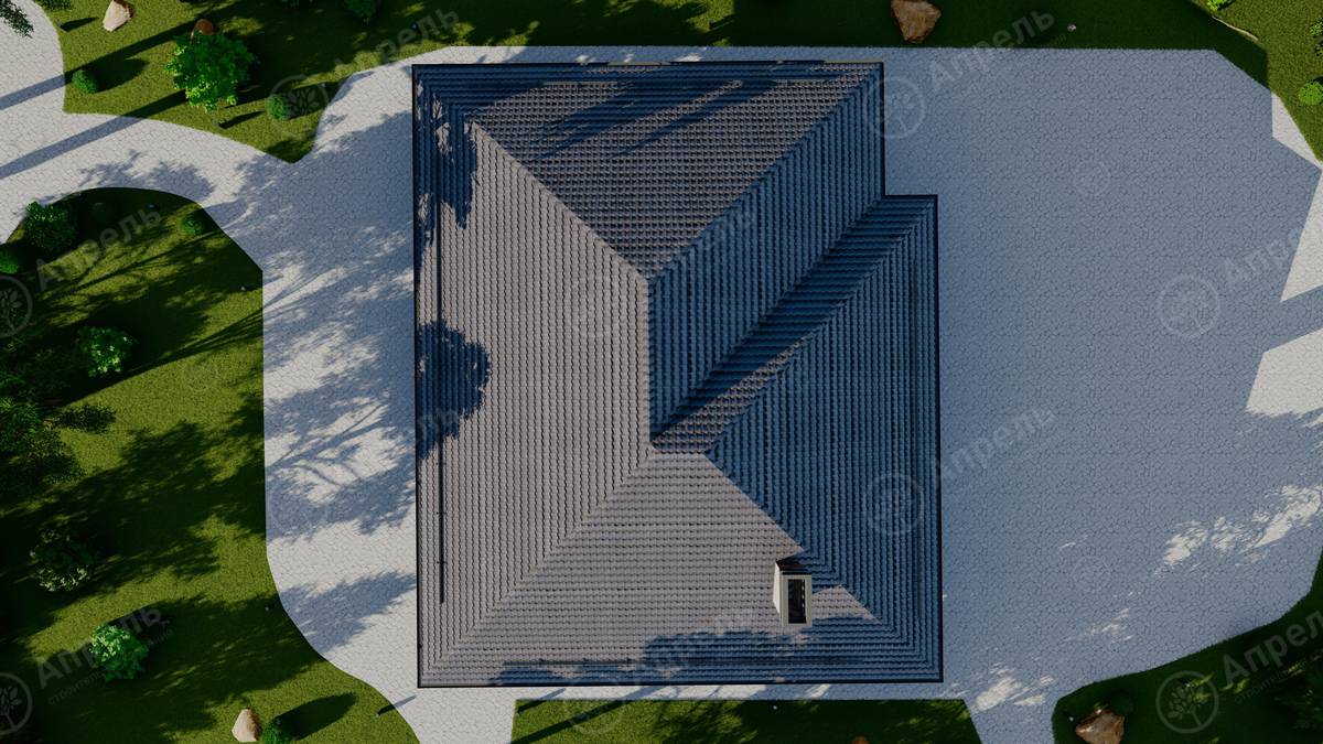 Стропильный каркас (доска сечением 200х50 мм), обрешетка (доска сечением 150х25 мм). Контробрешетка из бруска (50х50 мм). Пропитка пиломатериала огнебиозащитой. Ветро-влагозащитная мембрана Изоспан. Кровля — металлочерепица Grand Line (толщина 0,5 мм). Обшивка свесов кровли виниловыми софитами, монтаж ветровой планки.
