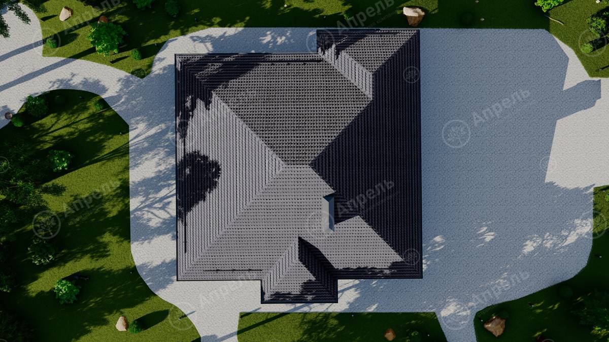 Стропильный каркас (доска сечением 200х50 мм), обрешетка (доска сечением 150х25 мм). Контробрешетка из бруска (50х50 мм). Пропитка пиломатериала огнебиозащитой. Ветро-влагозащитная мембрана Изоспан. Кровля — металлочерепица Grand Line (толщина 0,5 мм). Обшивка свесов кровли виниловыми софитами, монтаж ветровой планки.