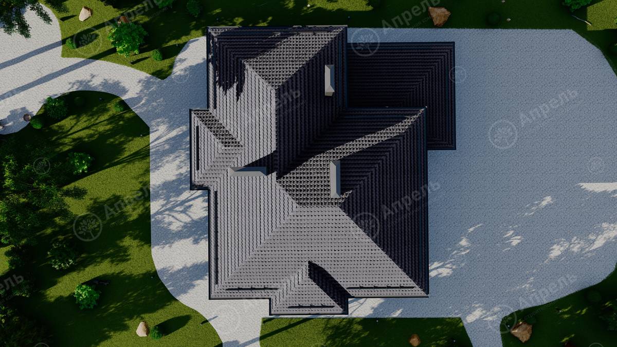 Стропильный каркас (доска сечением 200х50 мм), обрешетка (доска сечением 150х25 мм). Контробрешетка из бруска (50х50 мм). Пропитка пиломатериала огнебиозащитой. Ветро-влагозащитная мембрана Изоспан. Кровля — металлочерепица Grand Line (толщина 0,5 мм). Обшивка свесов кровли виниловыми софитами, монтаж ветровой планки.