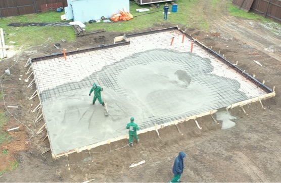 Универсальный вид фундамента. Применяется на местности с высоким уровнем грунтовых вод. Монолитная плита равномерно распределяет нагрузку по всей своей площади.